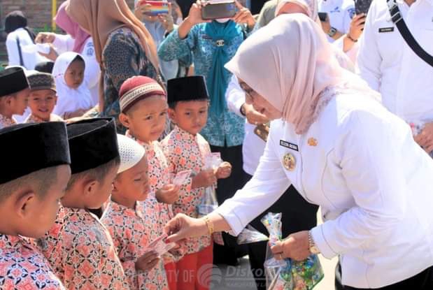 Katapublik Labuhanbatu, Dalam rangka Hari Anak Nasional, Pelaksana Tugas (Plt) Bupati Labuhanbatu Hj. Ellya Rosa Siregar S.Pd, MM, menyerahkan Kartu Identitas Anak (KIA) bagi murid TK ABBA Aek Paing Bawah, Jalan Pelita lV, Kelurahan Aek Paing, Kecamatan Rantau Utara. Rabu (24/7/2024).